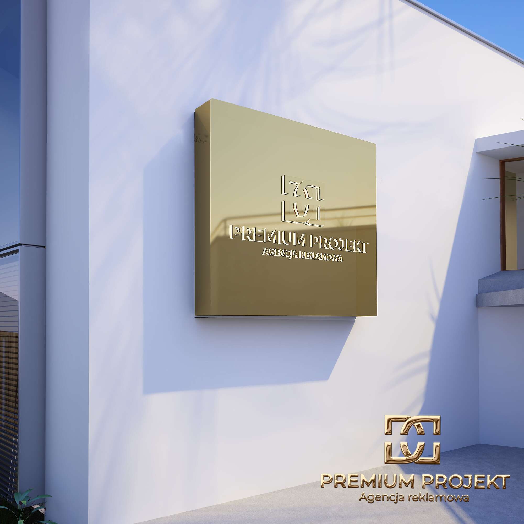 KASETON REKLAMOWY LED 60 CM ZŁOTE LUSTRO KWADRATOWY ŚCIENNY