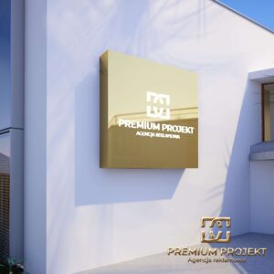 KASETON REKLAMOWY LED 60 CM ZŁOTE LUSTRO KWADRATOWY BOCZNY